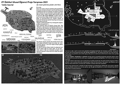 2021 Competition subject of zt Awards is designated as: Island. Poetry. Space. Participants are expected to design a place in the domestic sea of the Aegean, on this island near the mainland, that will be designed to read, share, and accumulate poetry, and can be a silent witness to all those that we feel the absence. Content, program, and location on the island is left to the contestants.
